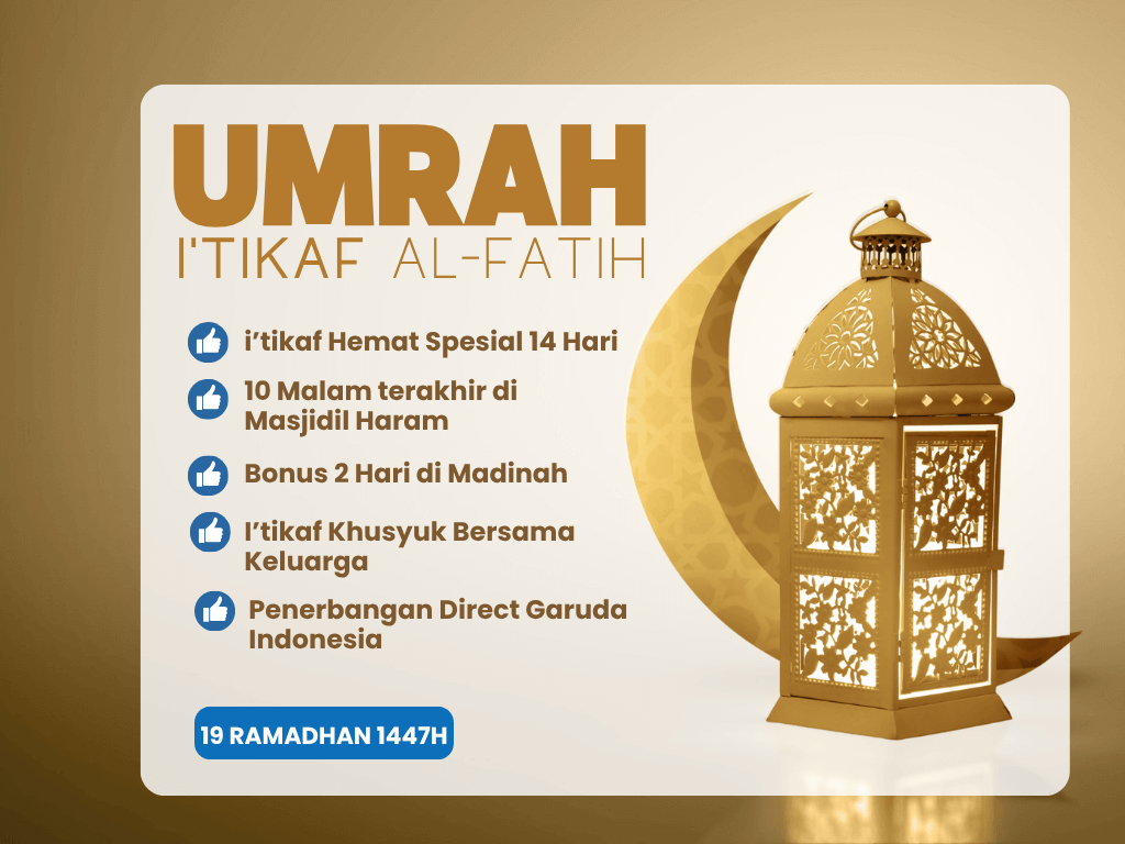 - Pembatalan diatas 30 hari, mendapat pengembalian 70% dari total biaya umroh.